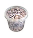 Nordseemuscheln in Frosted Lila, verpackt in wiederverwendbaren 1-Liter-Eimern. Perfekt für Blumengeschäfte und Dekorationsprojekte. Ideal für Großhändler und Hobbyisten! Lesen Sie mehr.